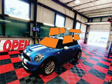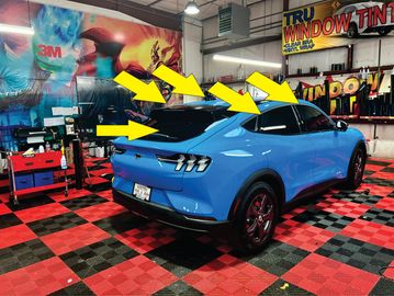 Automotive tint includes side windows and Service provides full vehicle tint with a strip.
